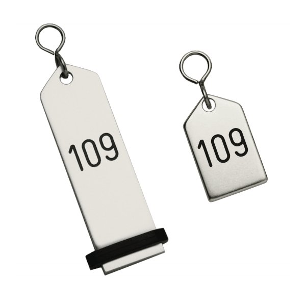 Σε δύο μεγέθη και χρώματα: Χρυσό και ασημί, χαραγμένο με το λογότυπο του ξενοδοχείου σας και αριθμό δωματίου. Το μεγάλο μέγεθος περιβάλλεται από προστατευτικό λάστιχο.